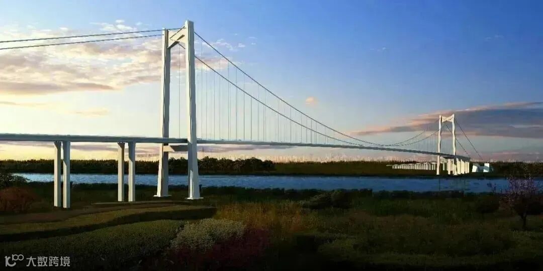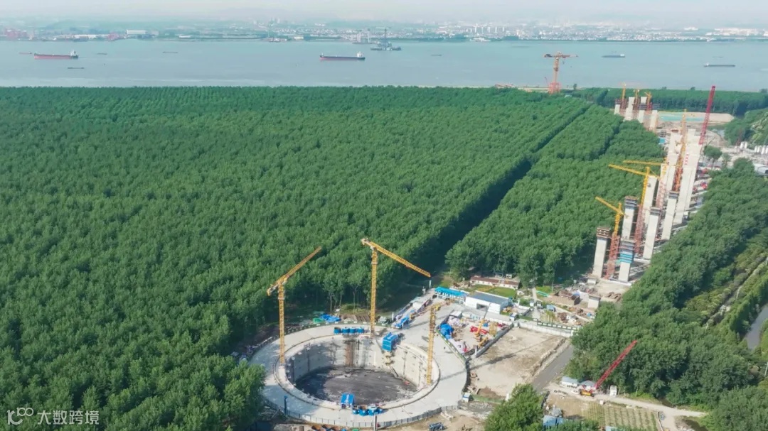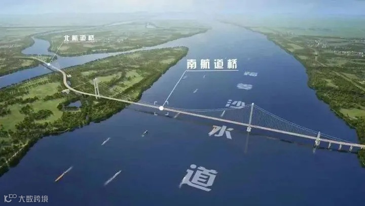 张靖皋长江大桥工程全长约29.8千米,其中跨江段全长7.859千米,分别设置主跨2300米的南航道桥和主跨1208米的北航道桥,建成后将成为世界最大跨径桥梁群,创下六项“世界之最”,实现六项“世界首创”。