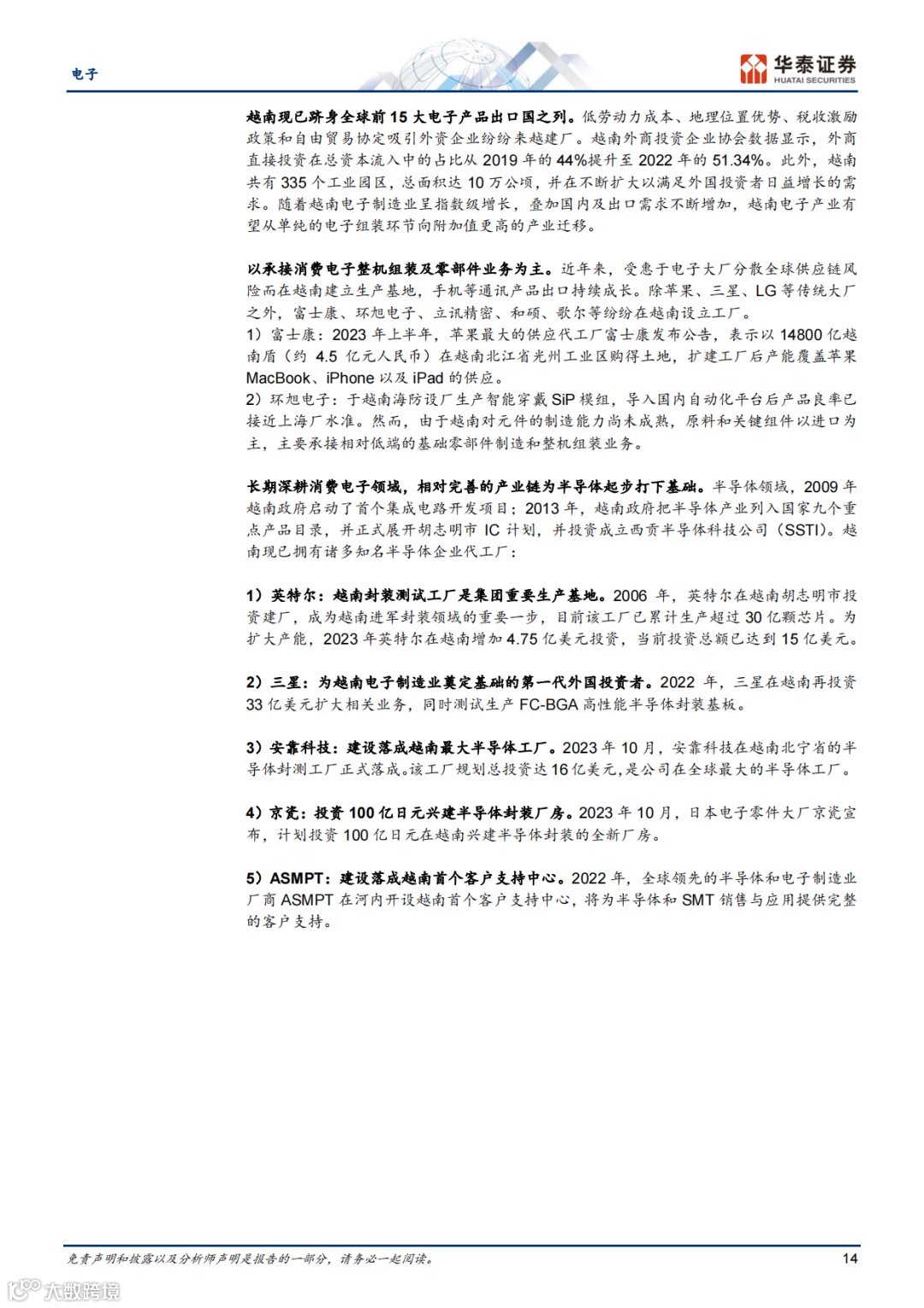 越南电子制造业近年来快速发展,形成了以三星、鸿海、立讯等为中心的产业集群。