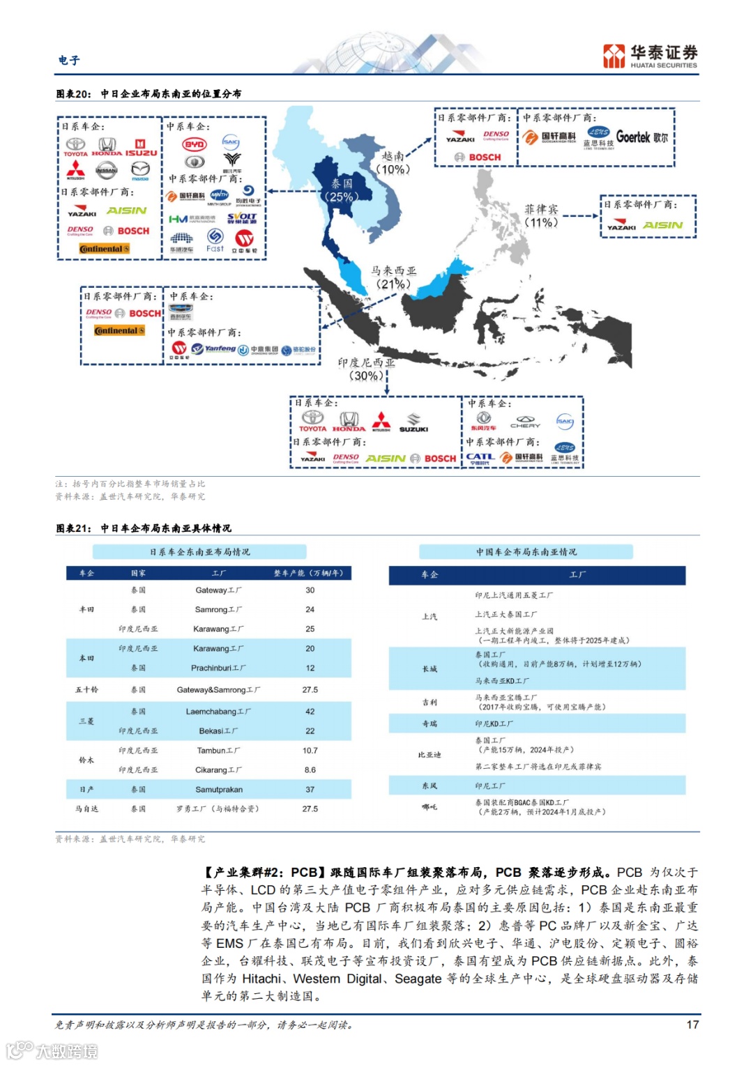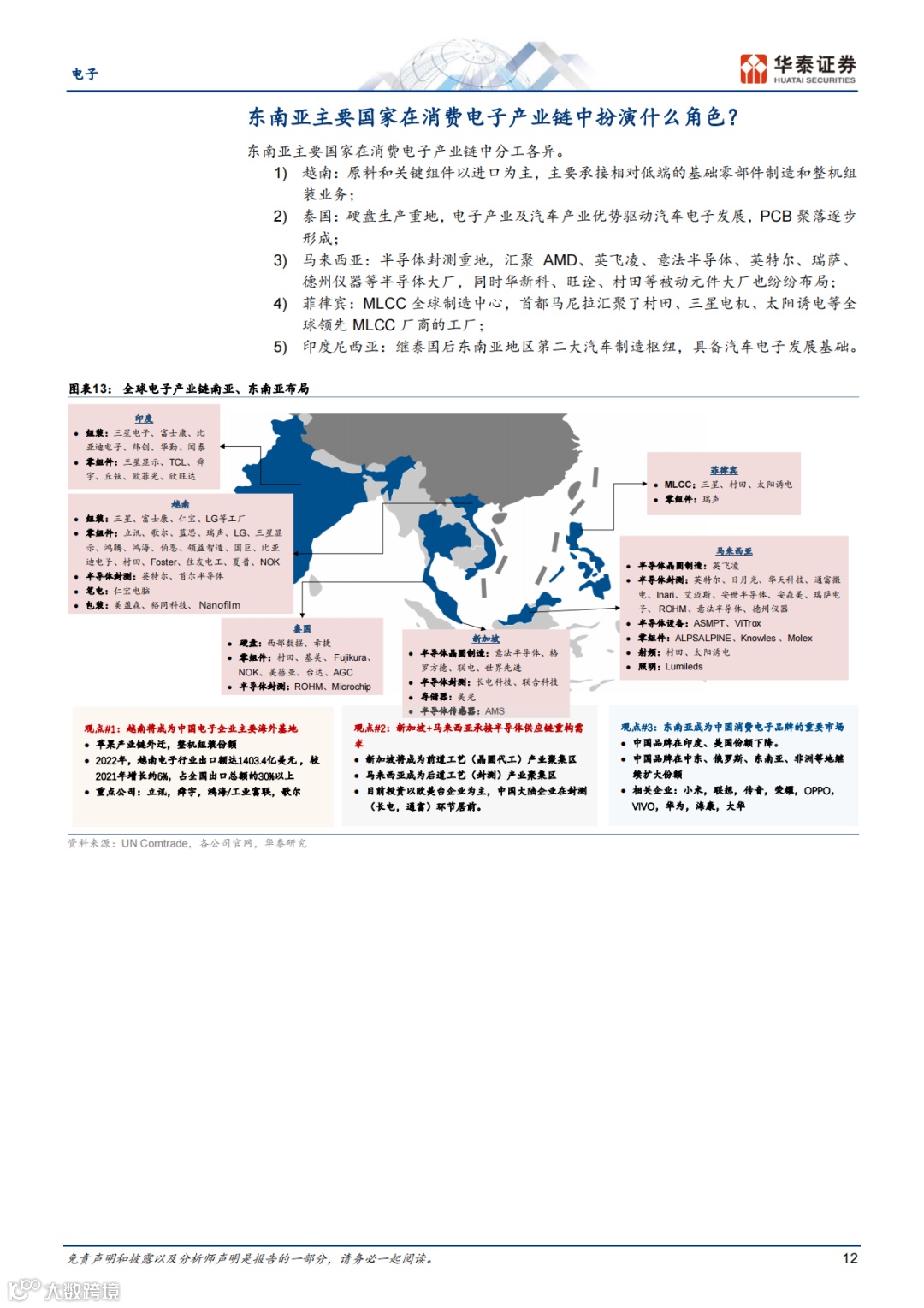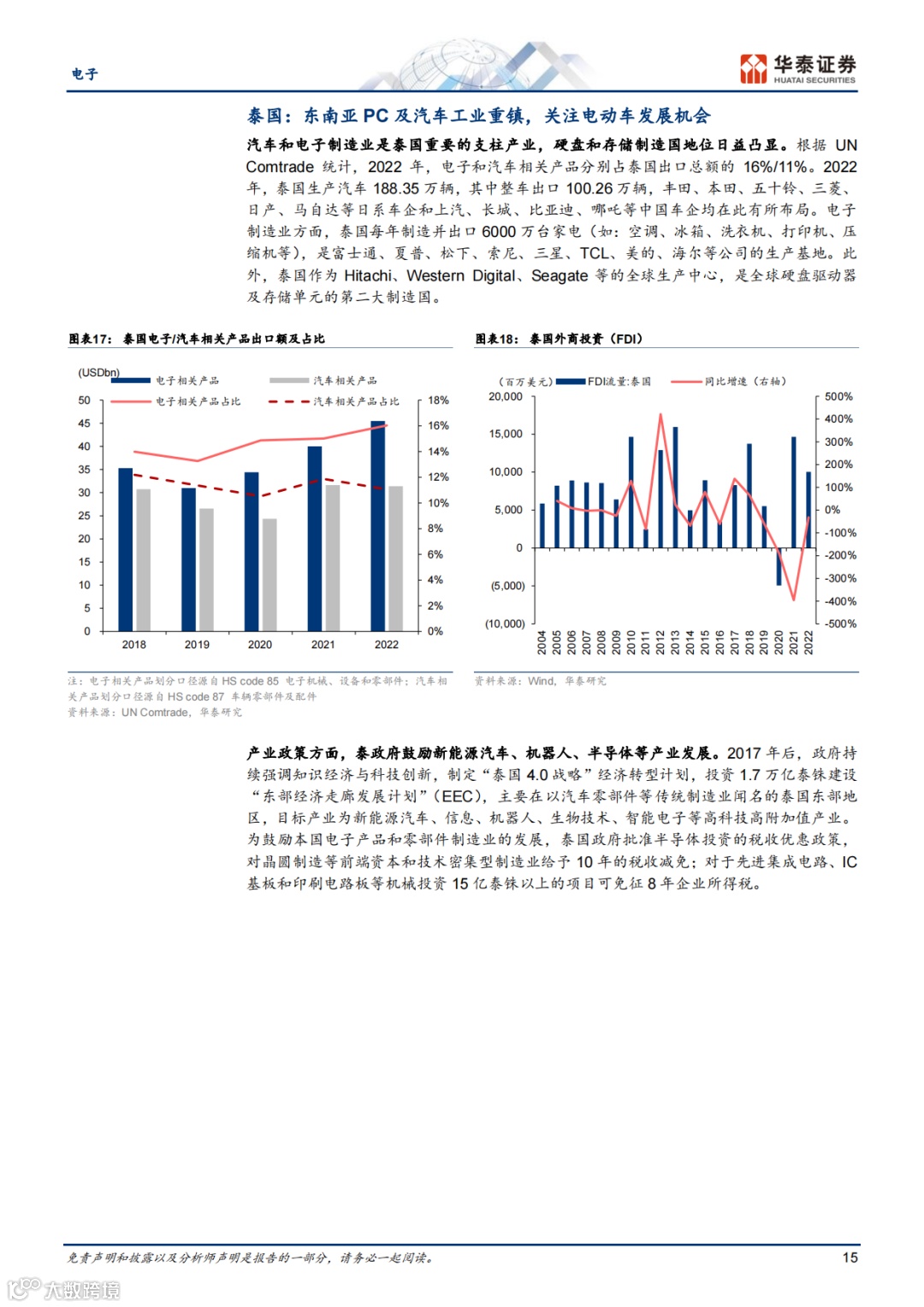 越南和泰国分别作为中国电子制造业和汽车工业的海外基地,具有地利、关税等优势。