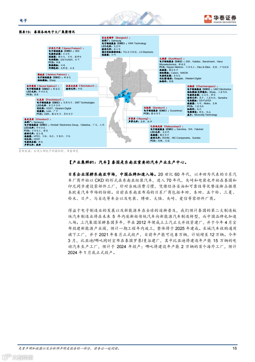 泰国有望成为中国电动车海外基地,本地企业如DELTA、HANA在全球产业链中有影响。