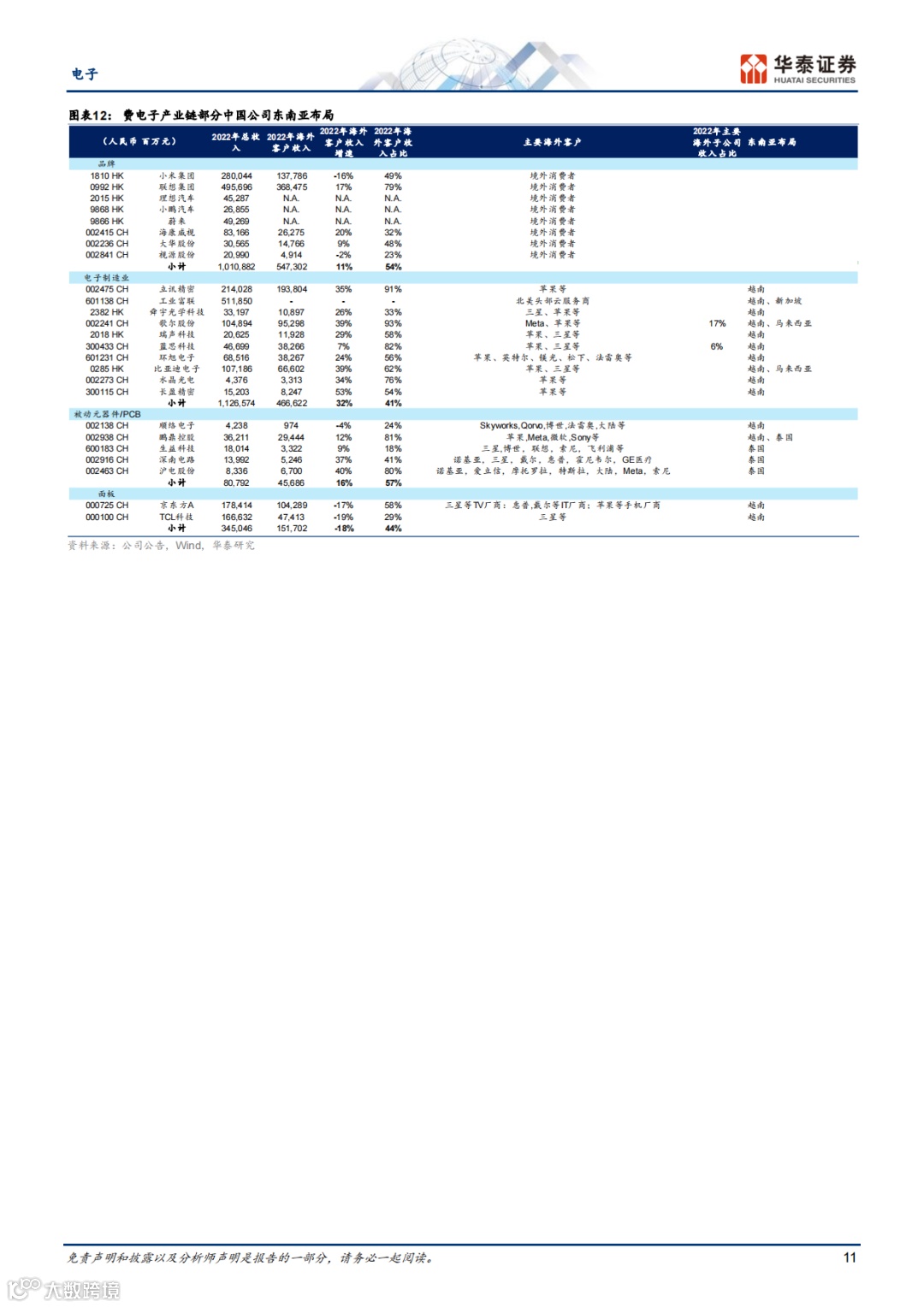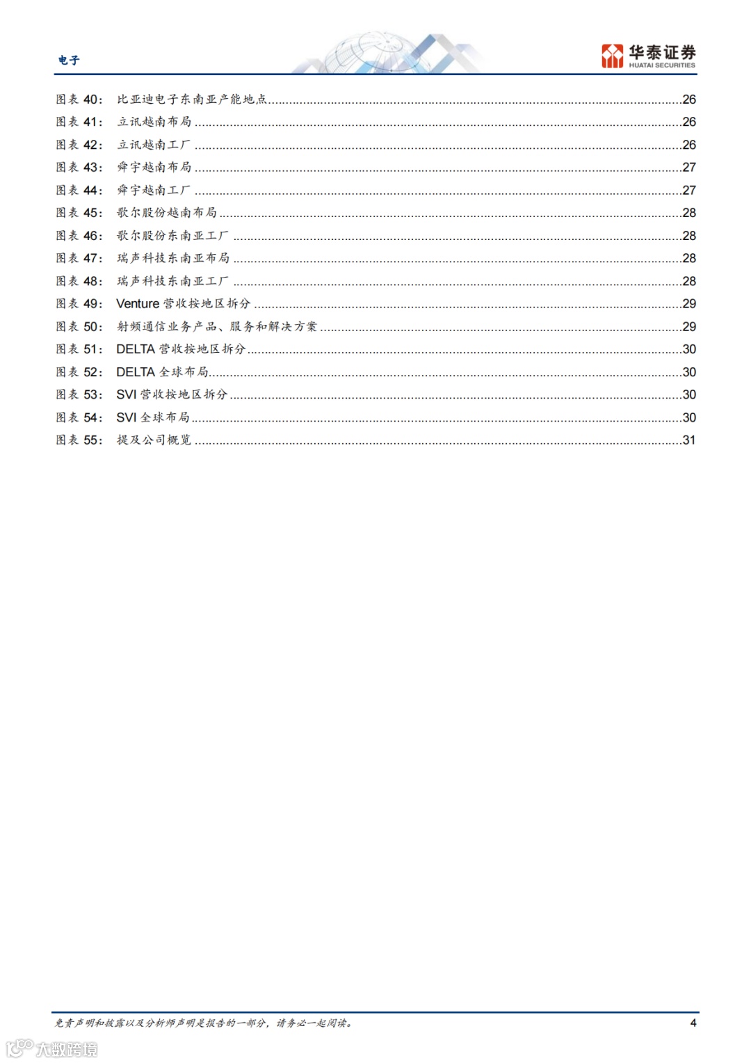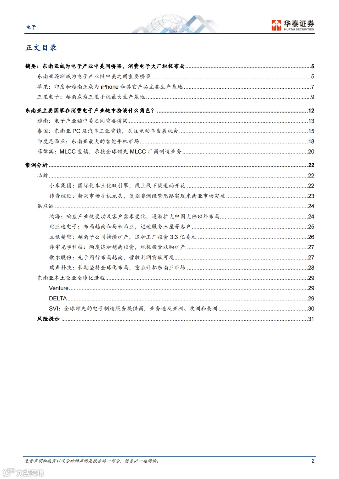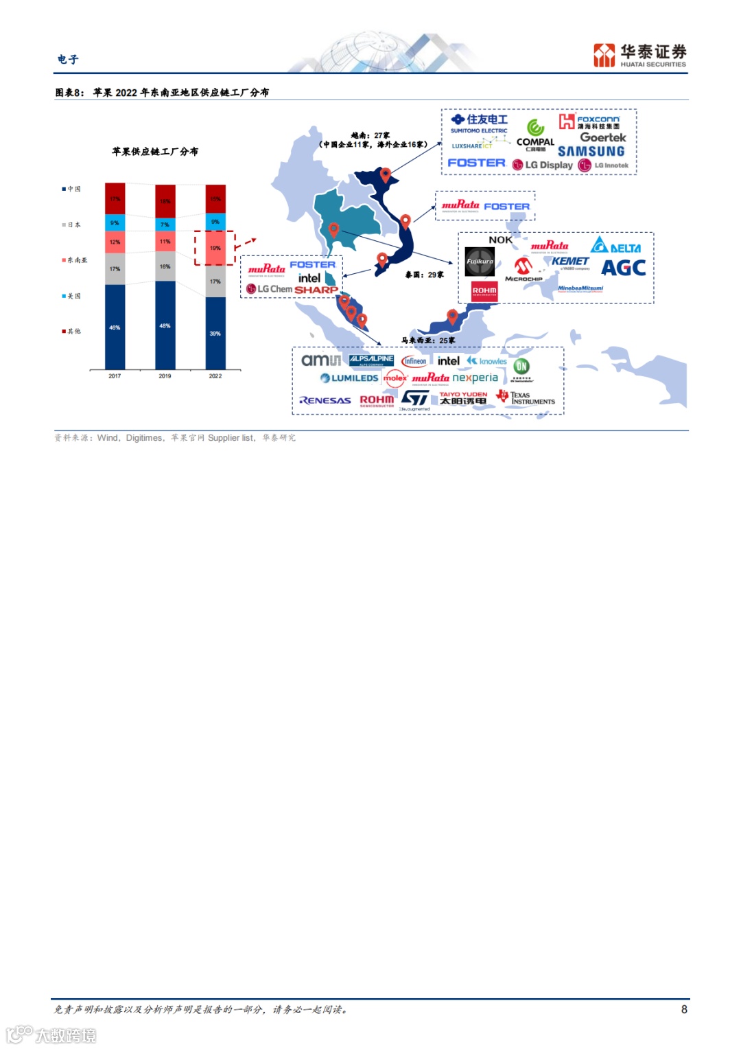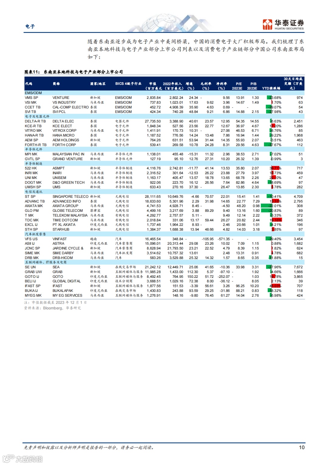 报告列举了东南亚本地科技与电子产业的部分上市公司,如Venture、DELTA、SVI等。