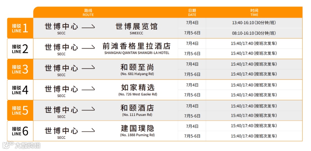 1、世博中心观众参会时间安排