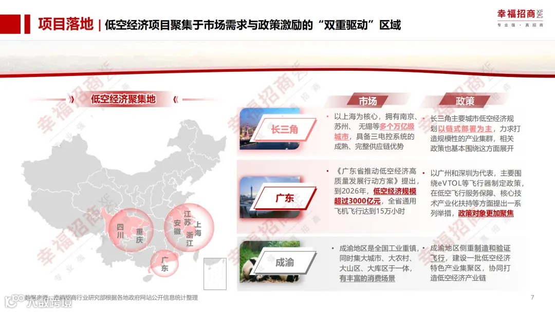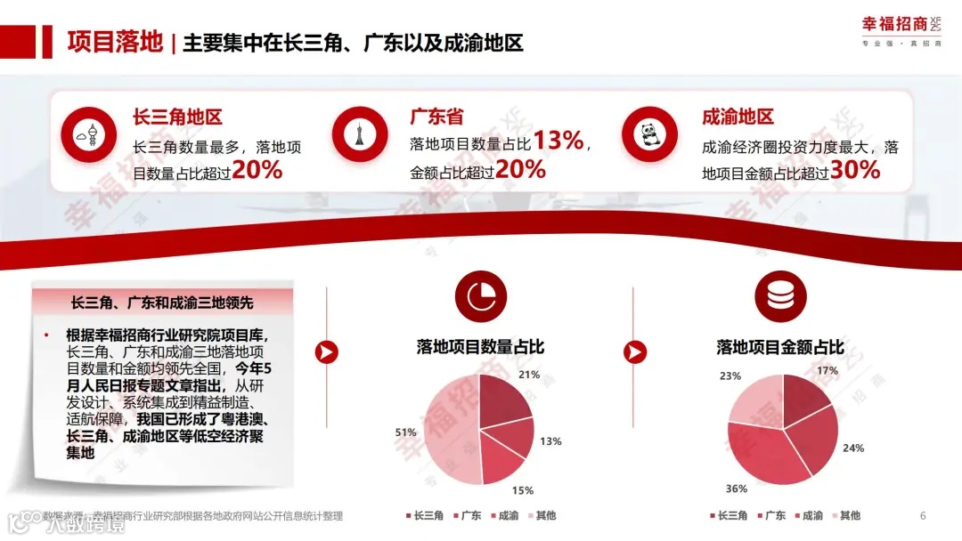 长三角、广东及成渝地区凭借其强大的经济活力与政策倾斜,成为低空经济项目落地的核心区域。