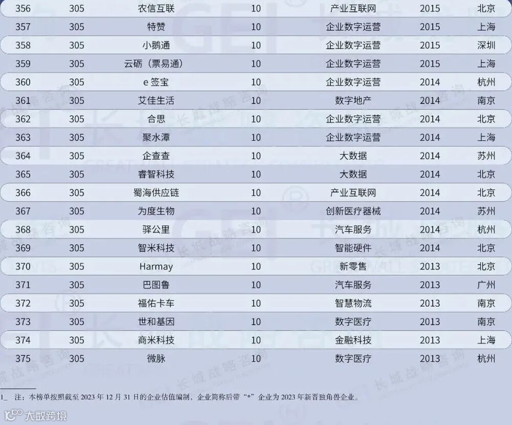6月16日,2024中国(重庆)独角兽企业大会发布的《中国独角兽企业研究报告2024》显示,2023年,中国独角兽企业共有375家,总估值约为1.2万亿美元。其中,超级独角兽企业12家,新晋级1家长鑫科技;新晋独角兽企业72家;因上市“毕业”的19家,因超龄“毕业”的26家。2023年独角兽企业平均成长年限为4.3年,其中新晋独角兽企业为5.4年。