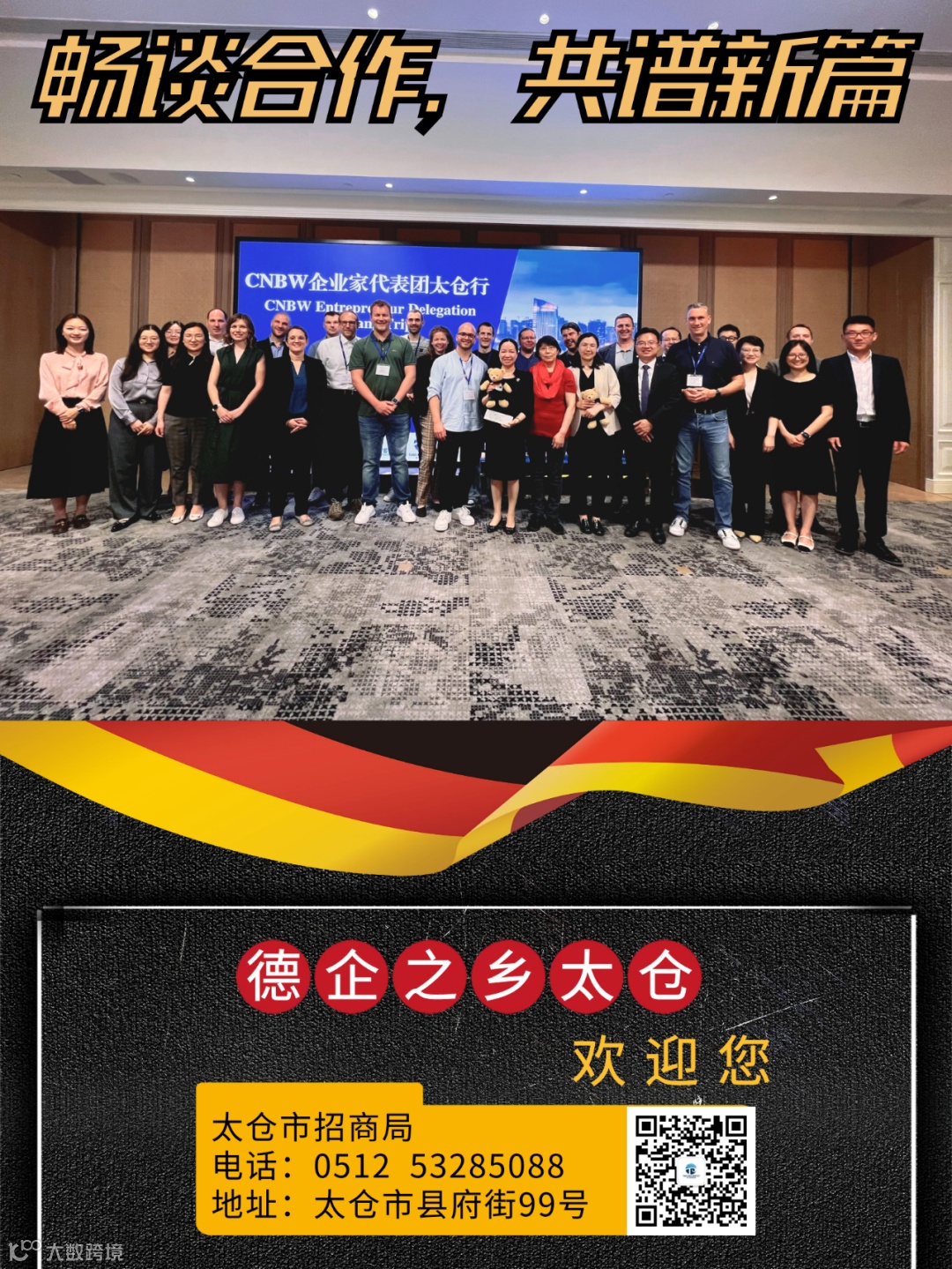 太仓深耕对德合作30多年,已集聚超500家德企、60多家世界“隐形冠军”企业,德资项目总投资额超60亿美元,600多家本土民企与德企展开深度合作。太仓探索实践了全国第一也是唯一一个由国家商务部和德国联邦经济部联合授牌的中德企业合作基地、第一个中德中小企业合作示范区、第一个与德国同步的双元制培训中心、第一也是唯一一个建在县级市的“德国中心”;打造了“原汁原味的德式街区”罗腾堡风情街,常态化举办“太仓日”、啤酒节等各种交流活动。太仓的对德合作已经从产业拓展到文化、教育、生活的各个领域,欢迎更多朋友和太仓双向奔赴、发展事业,共谱“对德合作”新篇章。