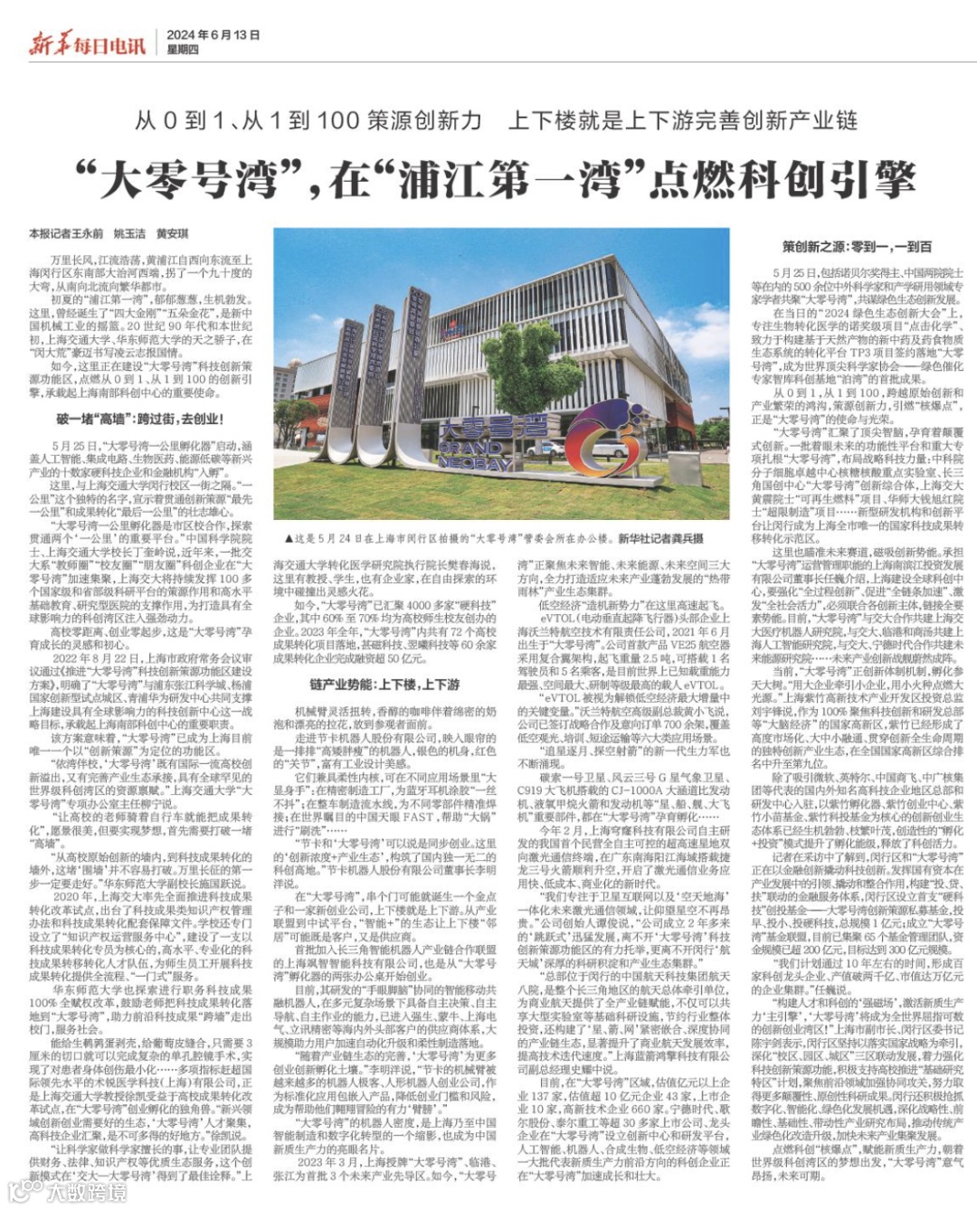 当前,“大零号湾”正创新体制机制,孵化参天大树。“用大企业牵引小企业,用小火种点燃大光源。”上海紫竹高新技术产业开发区投资总监刘宇锋说,作为100%聚焦科技创新和研发总部等“大脑经济”的国家高新区,紫竹已经形成了高度市场化、大中小融通、贯穿创新全生命周期的独特创新产业生态,在全国国家高新区综合排名中升至第九位。