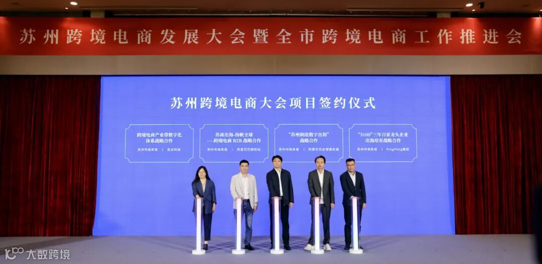 为推动跨境电商高质量发展,苏州持续加大平台企业和优质项目引育力度。现场,市商务局与阿里巴巴国际站、阿里巴巴全球速卖通、焦点科技、PingPong集团签署战略合作。京东国际跨境贸易平台、菜鸟国际跨境电商平台、焦点科技苏南区域总部、海智在线供应链、PingPong集团苏州跨境电商生态服务合作等6个重点平台项目,中新跨境电商特色产业创新园区、梵盛新零售产业园、跨境数字大健康电商生态园区、阿里巴巴全球速卖通(相城)跨境电商产业园、颐高(苏州)数字贸易产业园、苏州高新区跨境电商示范产业园等6个重点产业园项目,以及叁时叁刻跨境电商馆等6个贸易主体项目、互旦数字出海孵化中心等13个生态服务类项目集中签约。