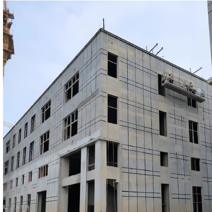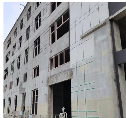 10#楼外墙涂料腻子层施工完成,幕墙骨架放线定位施工完成,塑钢窗安装完成。