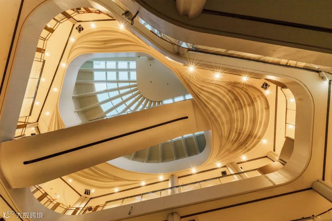山脉中庭,将天然木色材料与三角形元素紧密结合,诠释出悬崖、山顶、山脊等不同形态;河流中庭,有着灵动如水的室内设计,增强空间的层次感与趣味性,创造出宛若潺潺溪流蜿蜒而过的城市客厅;森林中庭,大面积自然采光天窗结合设计元素,打造出自然革新的生态美学。
