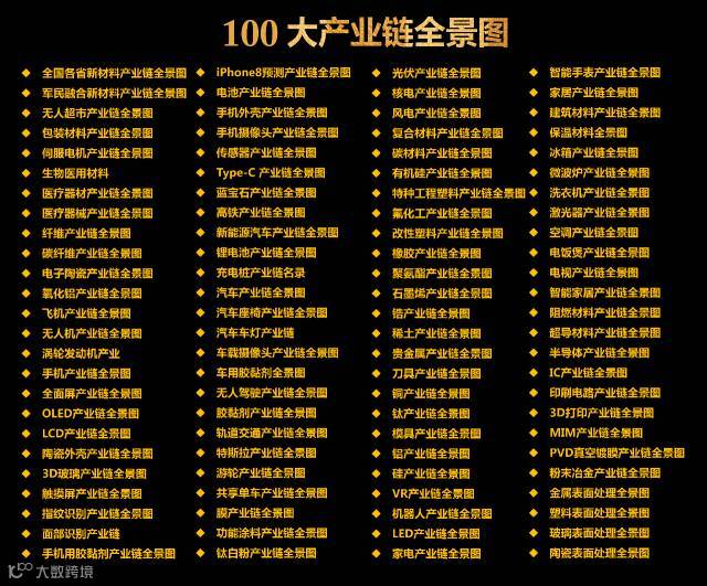 产业链是招商引资的关键,尤其是在全国多地推行通过链长制来实施产业链招商的情况下,很多地方强调要做好产业链地图。这其中先做好产业链主要领域图是前提,为此整理了100大产业链全景图供大家参考。