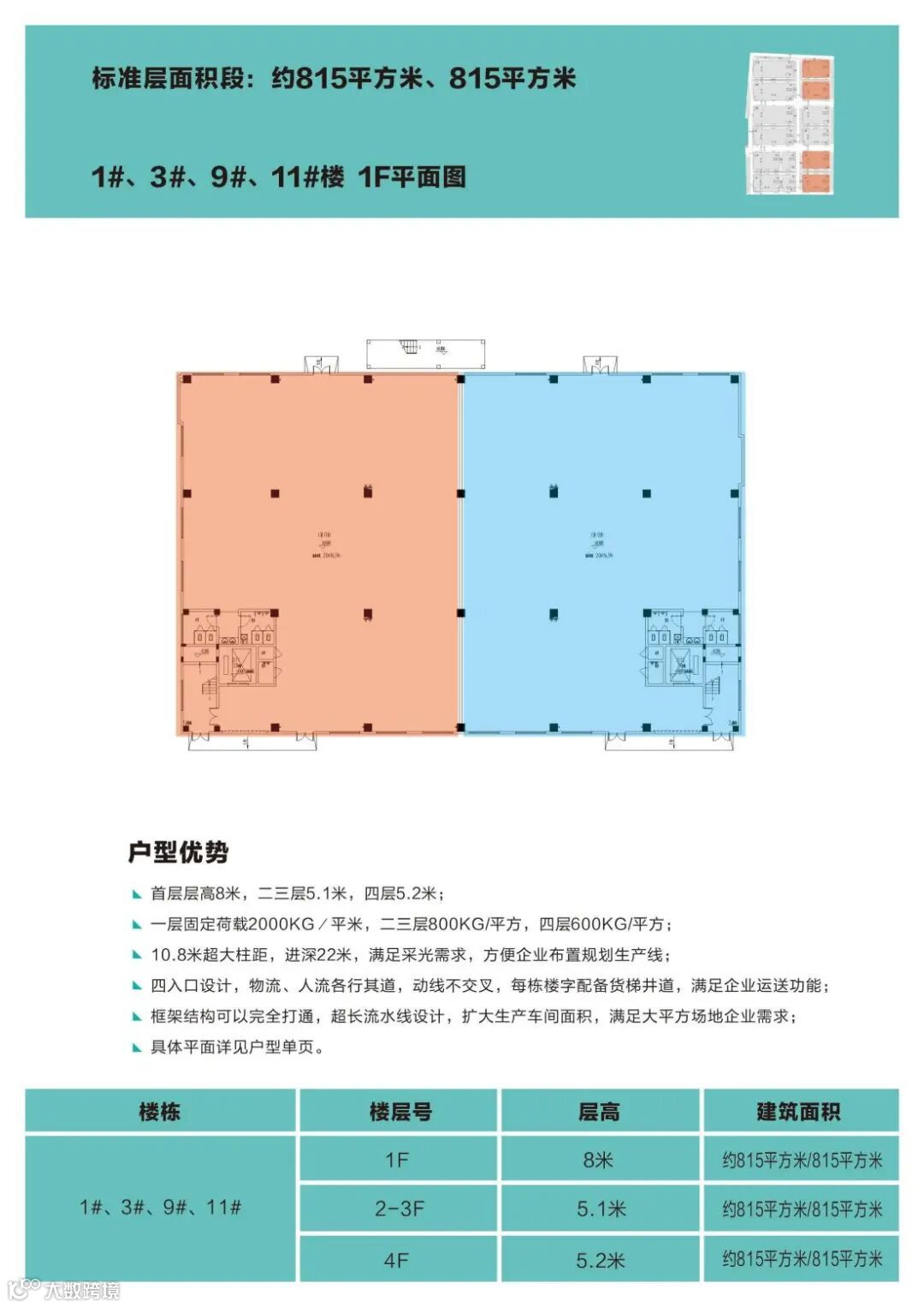 面 积:4层厂房,单层824平,1楼带牛腿。层高8+5.1+5.1+5.1米米