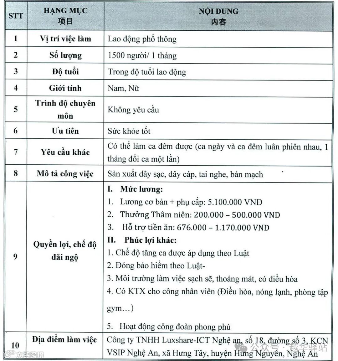 该企业提供的基本工资为每月550万越南盾(折合人民币1500元)。总劳动收入可达每月850-1100万越南盾(折合人民币2400-3300元)。除此之外,公司承诺提供稳定的工作和每月60万越南盾的津贴,但仍然没有多少工人感兴趣。