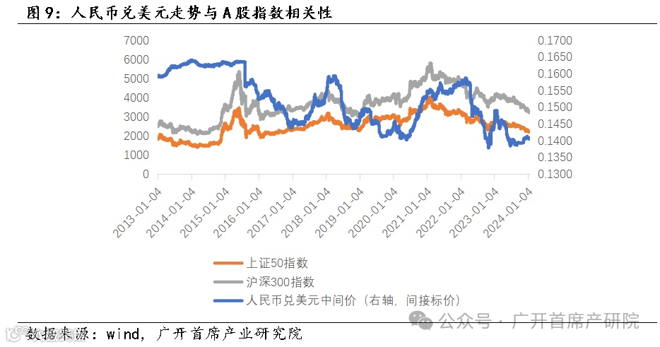 在中国金融市场开放进一步扩大的背景下,人民币稳步升值意味着人民币资产价格也可能形成上涨趋势,将带动人民币资产的投资活动趋向活跃。2024年中国股市本身存在不小的估值修复空间,在人民币升值预期下,市场上权益类和债权类的优质资产有望成为国际资本投资的重要对象;而在供需两端政策有力支持和需求逐步释放下,人民币标价的房地产也有可能因人民币升值得到支持而企稳。