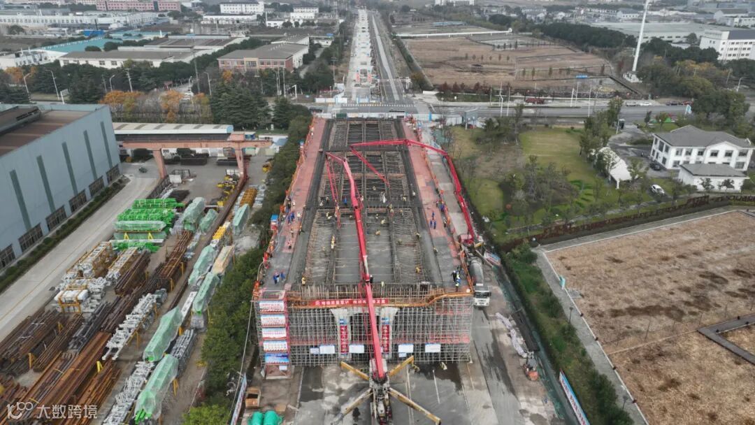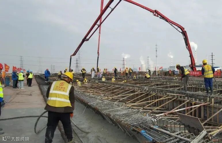 施工现场,伴随着机械的轰鸣声,一泵泵混凝土被灌入搭建好的模具内,2辆混凝土泵送车和70多名施工人员来往不停,忙于浇筑工作。