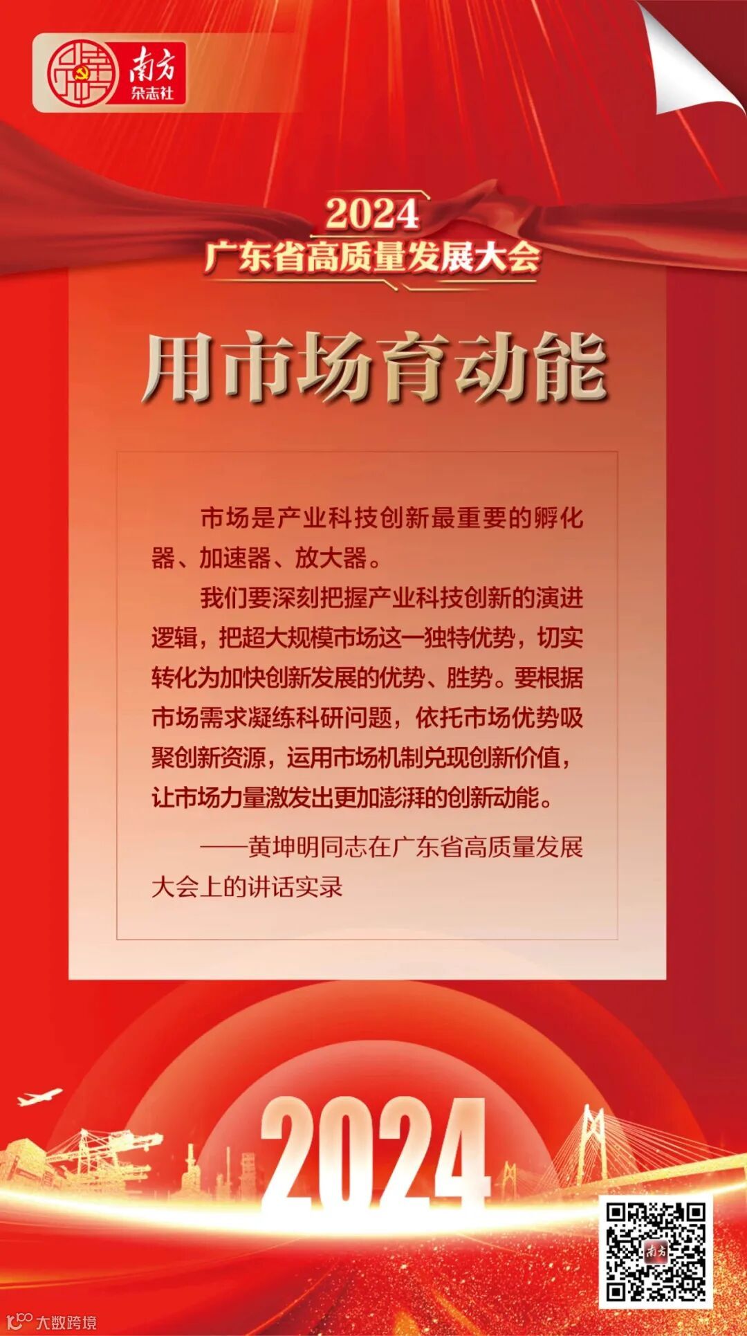 “去年春节后上班第一天,我们首次召开全省高质量发展大会,向全社会释放苦干实干、聚力前行的鲜明信号。今天,我们再度召开全省高质量发展大会,聚焦产业科技话创新、谋未来,就是要不断夯实实体经济为本、制造业当家的根基,持续推动高质量发展。”广东省委书记黄坤明在全省高质量发展大会上表示。