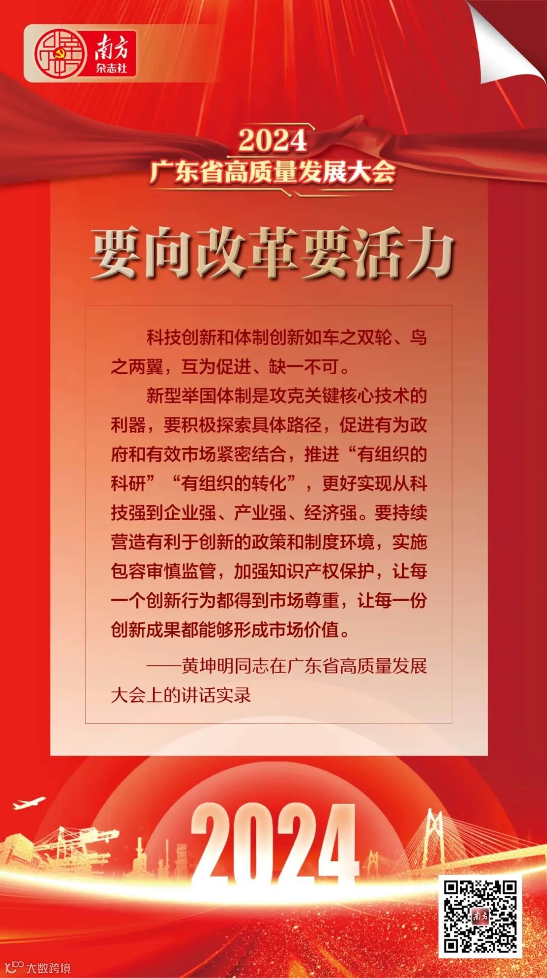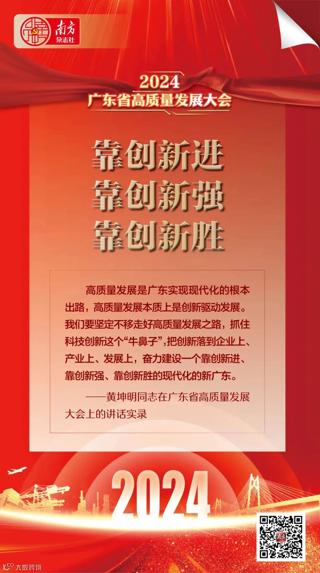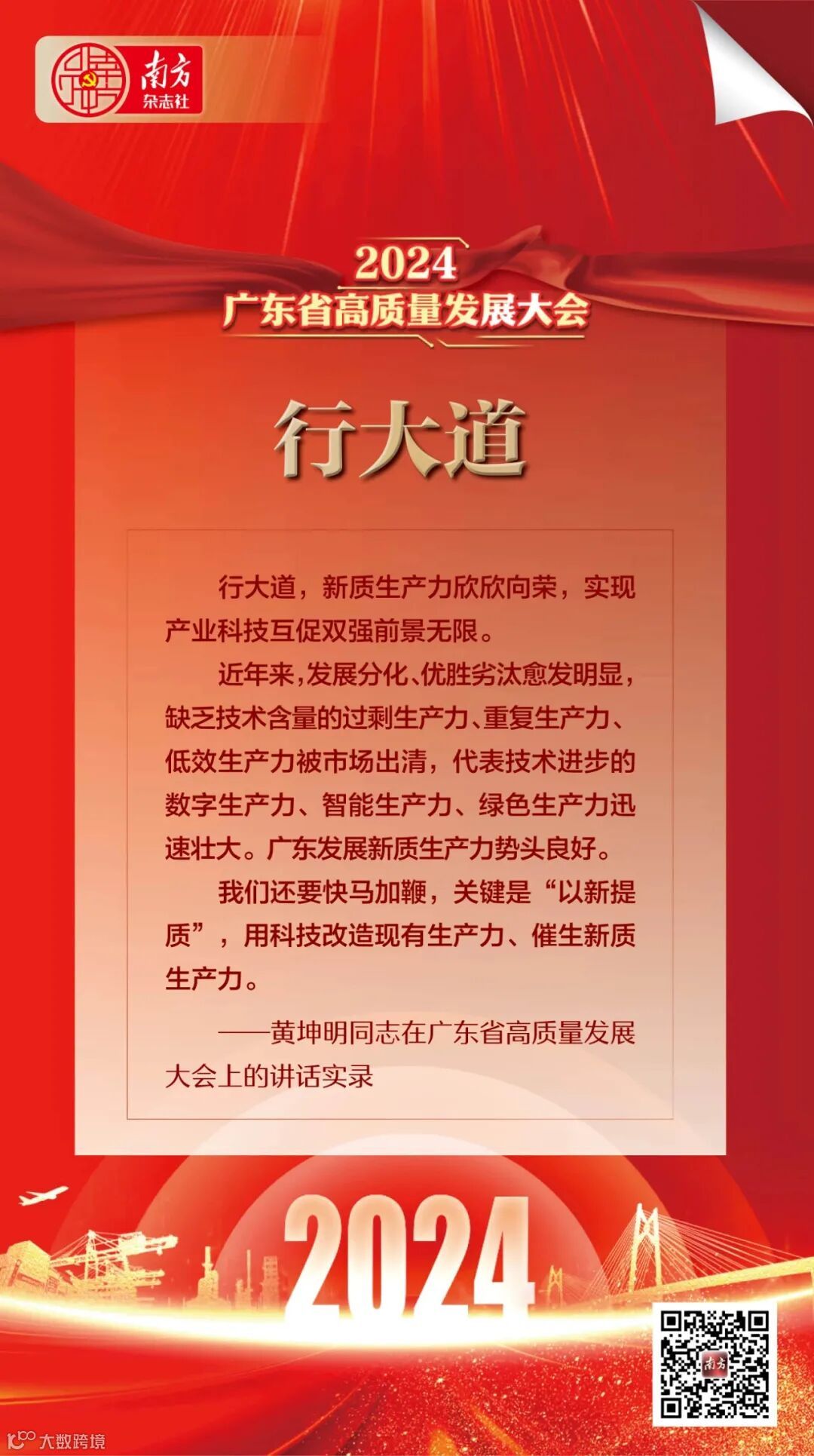 2024年2月18日,甲辰龙年首个工作日,广东省委、省政府召开全省高质量发展大会。会议紧扣高质量发展主题,促进产业和科技互促双强,全面提升科技高水平自立自强能力,加快建设现代化产业体系,不断塑造发展新动能新优势。
