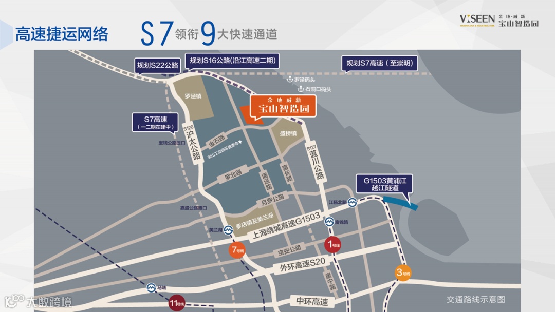 【交通位置】毗邻高速S7(沪崇高速),S7与S20外环、G1503上海绕城相联,距离虹桥机场35-40分钟左右。7号线地铁美兰湖站,1号线地铁富锦路站,3号线地铁江杨北路。