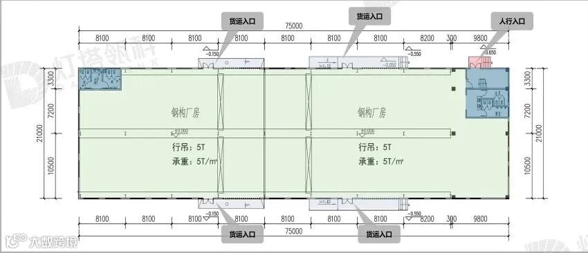 2层框架建筑面积:3500㎡套内面积:3500㎡层高:1F8.1;2F4.5层数:2