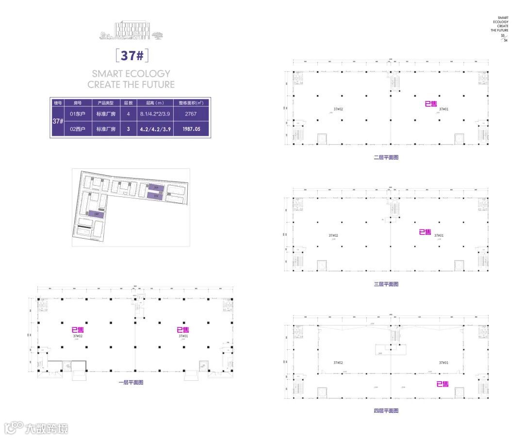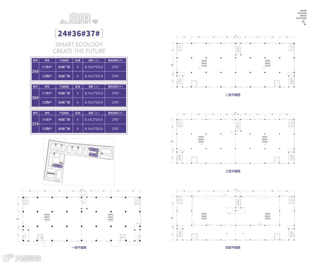 36号-1楼,4层,层高8.1/4.2/4.2/3.9米,面积2767平方米