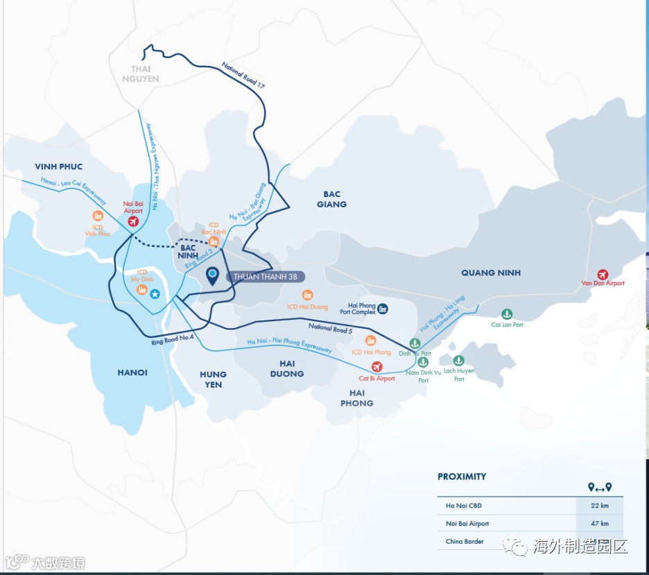 位置优越:离河内22公里,47 公里到河内内排国际机场,102公里到海防港口