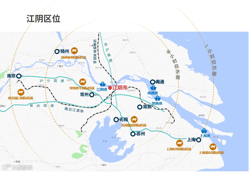 江阴,地处长三角沪宁杭城市群几何中心,是长江下游新兴滨江工业港口城市和交通枢纽城市。江阴位于苏南区域,东接张家港,南临无锡,西连常州,北对靖江,区域内拥有: