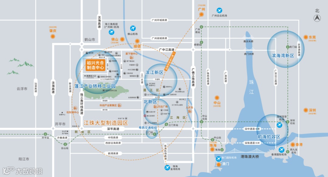 项目周边有多条高速公路出入口,包括沈海高速、广中江高速、银洲湖高速和珠三角环线高速等,方便企业货物的进出口和商务出行。