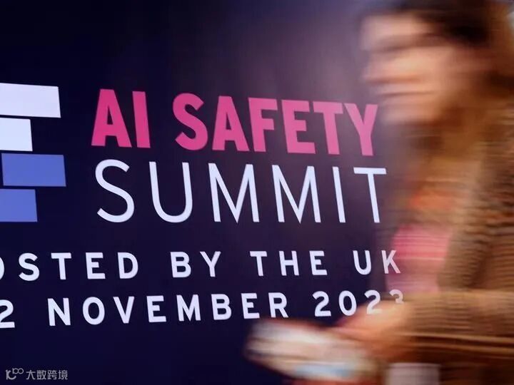 图为2023年11月2日,在英国布莱奇利园,一名参会者经过首届人工智能安全峰会的宣传展板。新华社记者 李颖 摄