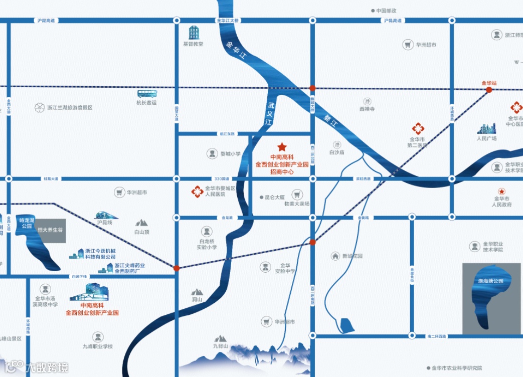 项目周边交通便捷,沪昆高速和建武高速环绕,距离沪昆高速出口和入口分别仅5.01公里和5.05公里,距离建武高速出口和入口分别为11.34公里和11.40公里。此外,项目还毗邻金华火车站和金华机场,方便企业货物的进出口和商务出行。