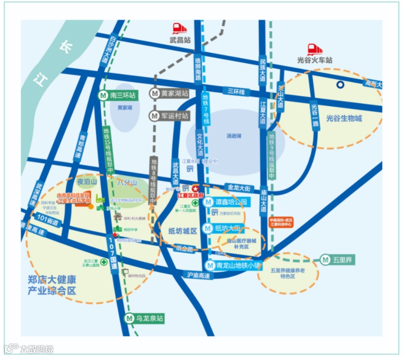 光谷南大健康产业园江夏生命科学城,位于武汉市江夏区东风路,总体规划101亩,建筑面积11万方,总投资约5亿元。建成并投入运营后,预计引入企业100家,解决就业超3000人,年产值10亿元。该项目是中南高科携手江夏经发投集团共同打造的大健康产业研发制造基地,肩负着武汉市大健康产业“一城一园三区”联动发展的重要使命,是武汉市万亿大健康产业发展的重要承载地。