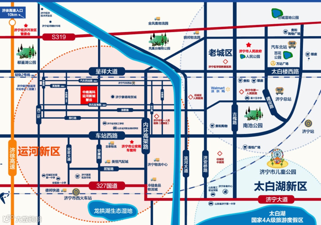项目周边交通便捷,济徐高速、济商高速和济宁机场高速环绕,距离济徐高速出口和入口分别仅7.75公里和7.83公里,距离济商高速入口和出口分别为11.96公里和11.97公里,距离济宁机场高速出口11.71公里。此外,项目还毗邻济宁火车站和济宁机场,方便企业货物的进出口和商务出行。