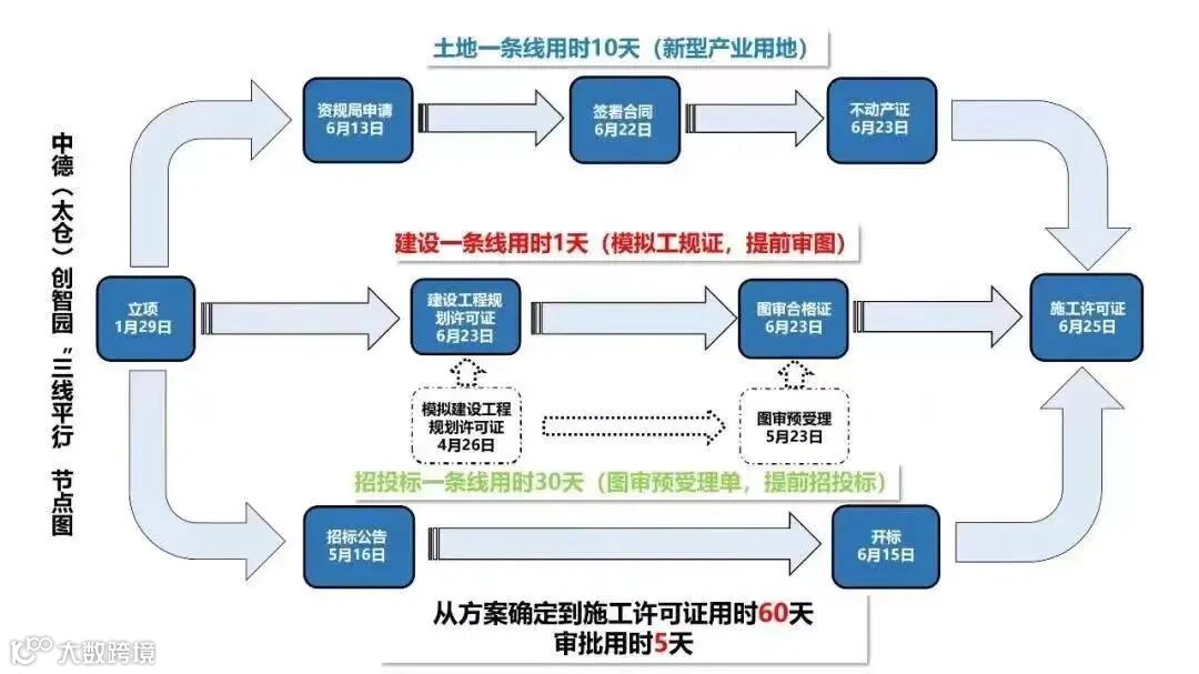 如果说为中小企业“拼”速度靠的是精准服务,为大企业“拼”速度则靠的是“引擎”。数据显示,今年到目前为止,太仓全市122个新增新建重点项目上半年全部开工,从项目立项到开工平均审批时间缩短为6天,从土地摘牌到发出施工许可证,平均不到30天,实现“拿地即开工”常态化,立项及施工许可证环节“即办”。其中一省级重点项目更是“一天发4证”,同时取得用地规划许可证、工程规划许可证、图审合格证及人防审核决定书,并于次日取得施工许可证。