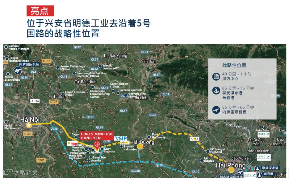 ·位置:离海防港口85公里,河内市中心:35公里, ,离内排机场45公里