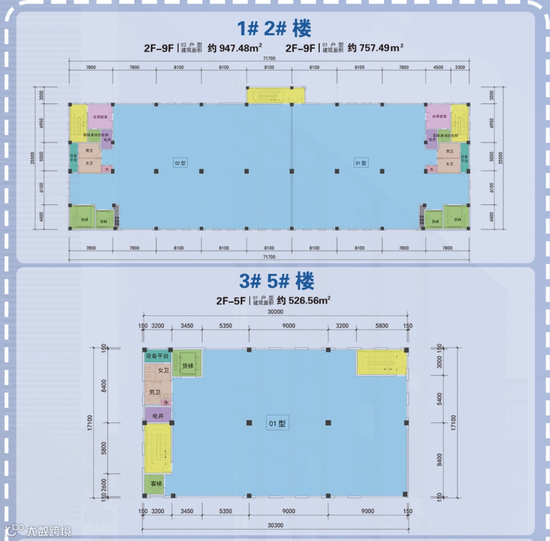 其中厂房分为独栋厂房和高层厂房,集企业生产、技术研发、商务办公于一体。我们厂房可以整栋购买,也可以分层购买,面积段500 — 8000㎡。厂房结构为5层和9层。首层5.9M,标准层4.2M ;楼板荷载一楼2KN、标准层500KN,2部3吨2部5吨垂直电梯、量身用电配备,产权独立、可按揭贷款(首付最低30%),5层独栋厂房预留电梯井2吨的货梯和1吨的客梯。
