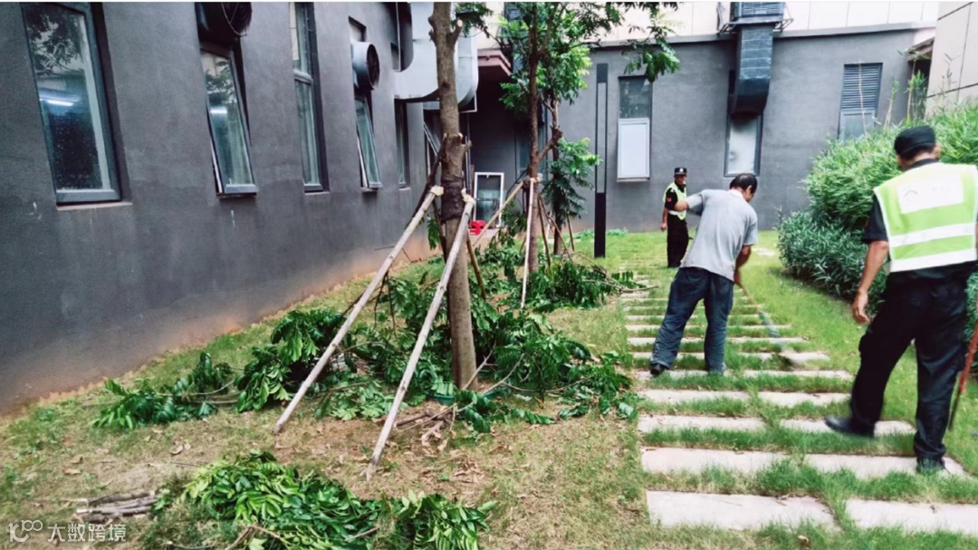 安保团队对门窗进行二次加固,督促园区户外施工立即停止作业,并切断施工用电,加固棚架,分时间段到楼栋天台排水口观察及疏通;