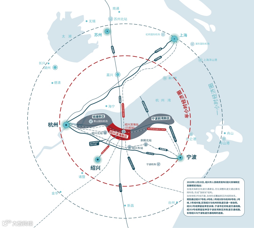 高铁:新规划绍兴滨海站,约20分钟至杭州,约30分钟至宁波市区,约1小时至上海市区,另外园区周边还设有绍兴北站,绍兴东站,余姚北站等高铁站;
