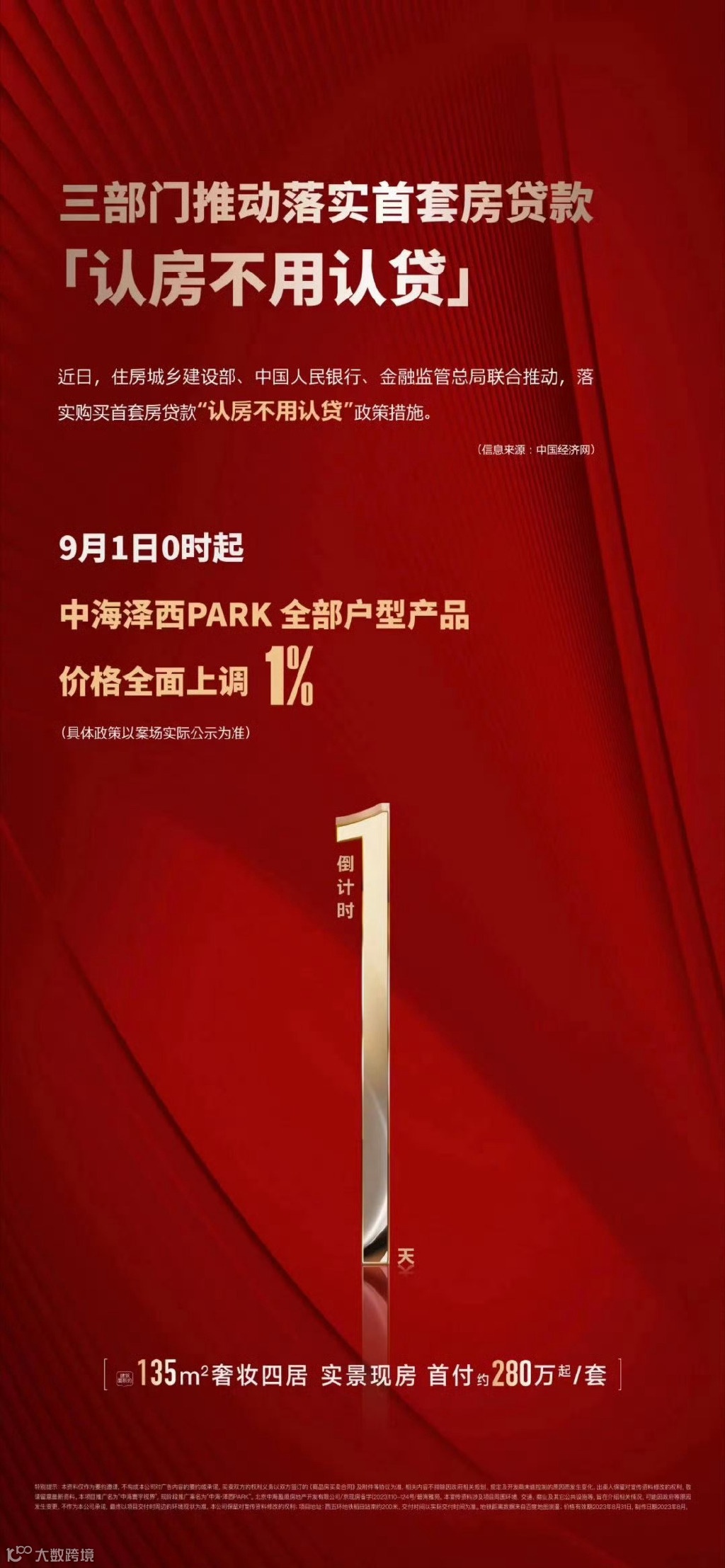 比如,央企北京中海在开发的楼盘中海泽西PARK发海报称,项目价格全面上调1%。