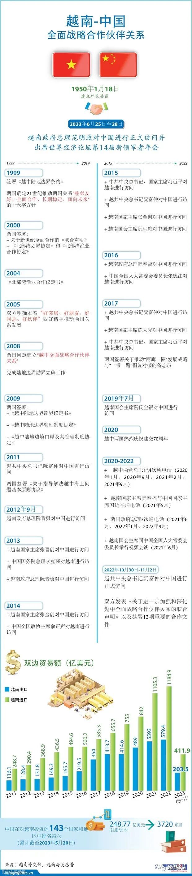 2023年前5月,越南与中国进出口总额达615亿美元,较2022年下降14.5%。其中,越南对中国的出口额为203亿美元,较2022年同期下降6.8%。
