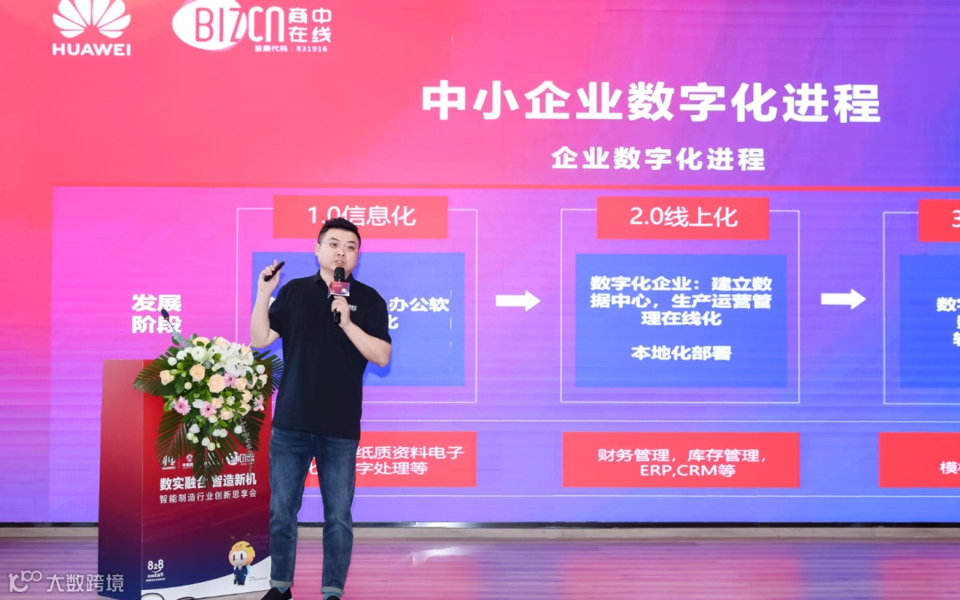 活动现场,华为云伙伴商中在线CPO丁如纲也带来了题为“智造新机,加速企业研产销服数字化”的分享,他表示,企业开展数字化转型,从外部来看有助于提升企业的品牌价值,从内部来看有助于企业实现降本增效,他表示企业应更多关注新互联网营销模式,其中商中联合华为打造的“短视频营销+数字人视频”一站式解决方案,为企业私域流量增长带来了全新的运营方式,在帮助企业减少依靠广告投放吸引流量的运营方式下,成功帮助某机械厂在短时间内增长粉丝量4W+,获取线索数3800+,增长销售额40W+,成功实现降本增效。