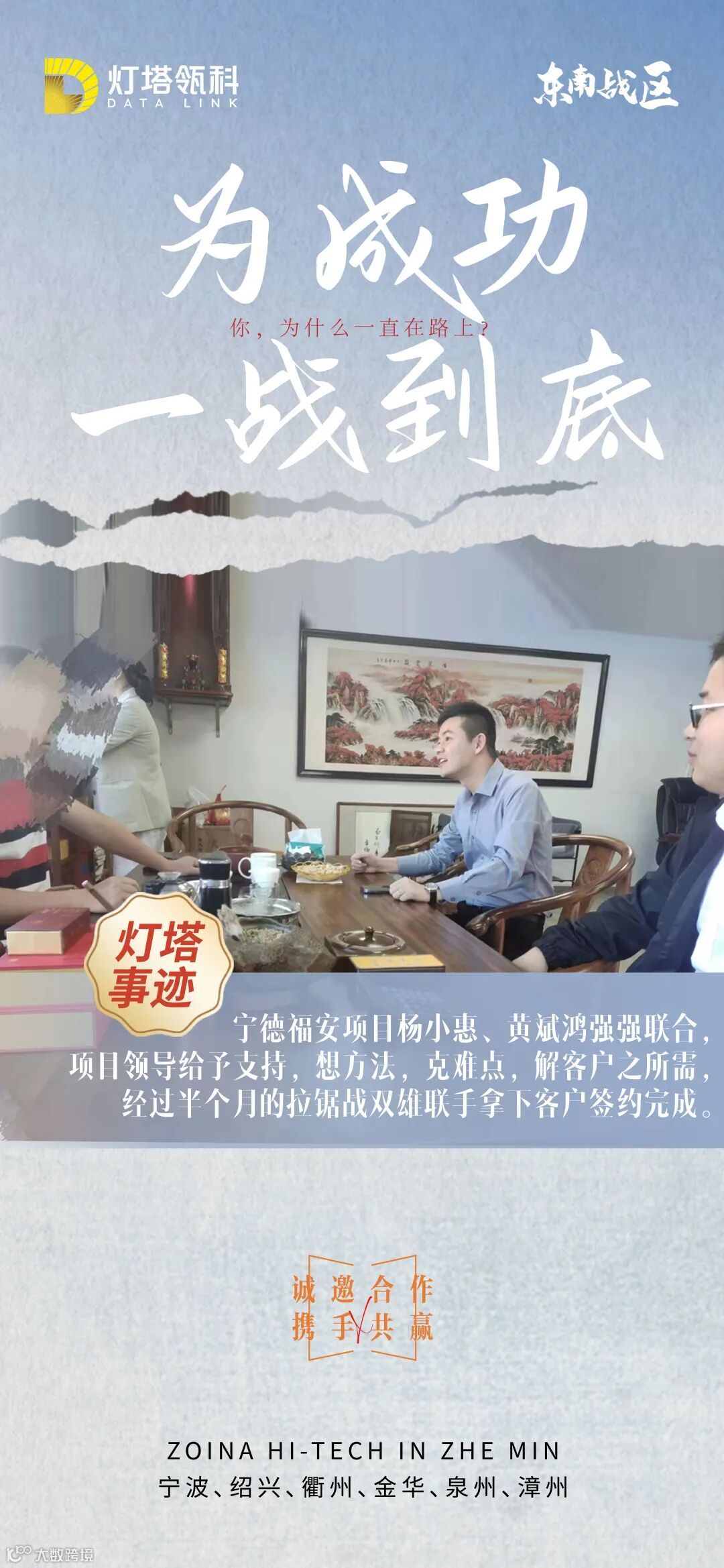 宁德福安项目杨小惠、黄斌鸿强强联合,项目领导给予支持,想方法,克难点,解客户之所需,经过半个月的拉锯战双雄联手拿下客户签约完成。