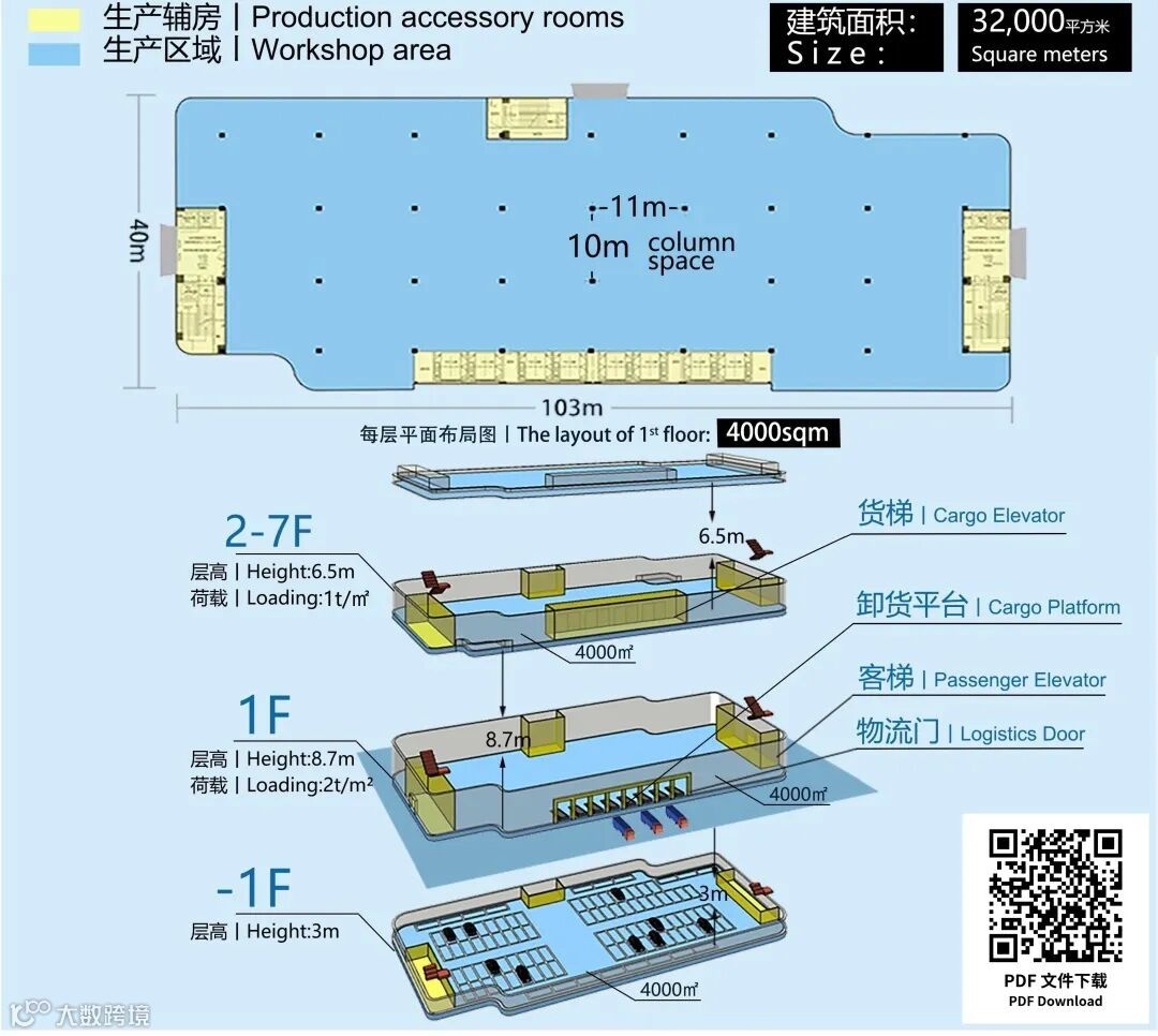 顺应“工业上楼 向天空要空间”的时代新路,平谦新一代多层厂房每栋建设有7层楼,首层层高8.7米;2-7层层高6.5米。能满足医疗器械、仪器仪表、检测检验机构等行业的需求。