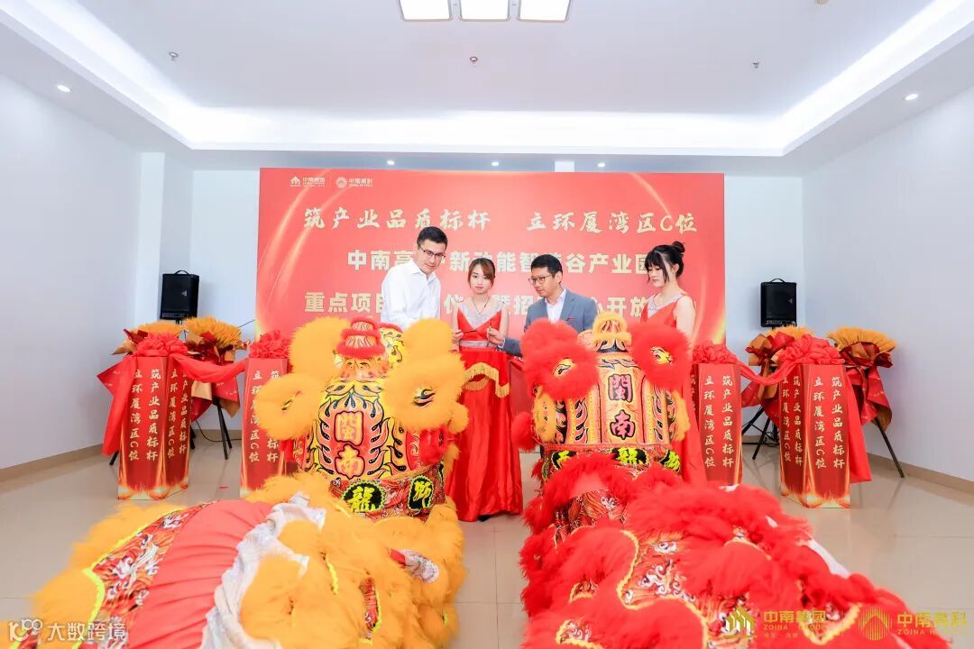 金剪齐开,旗开得胜!礼炮响起,在绚烂的礼花氛围和全场嘉宾的见证下,漳州开发区党委委员、管委会副主任赵金涛,漳州开发区投资促进局局长钟波,漳州开发区经济发展局局长助理黄松任,中南高科产业集团福建公司总经理王海运,中南高科产业集团东南战区招商总经理程勘宇,中南高科·新动能智造谷项目总经理田赛等领导上台一同参与剪彩仪式,为中南高科·新动能智造谷开启全新的篇章,为项目招商中心正式开放拉开序幕。