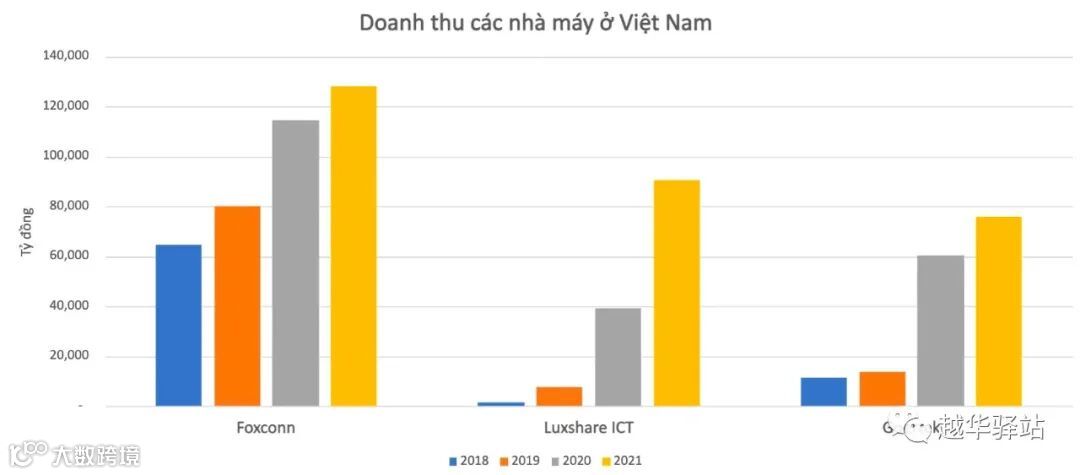 根据我们掌握的数据,苹果三大合作伙伴富士康、立讯精密、歌尔在越南的销量持续大幅增长。截至2021年底,越南这3家工厂的总收入已达130亿美元,较上年增长35%,较2018年增长4.5倍。