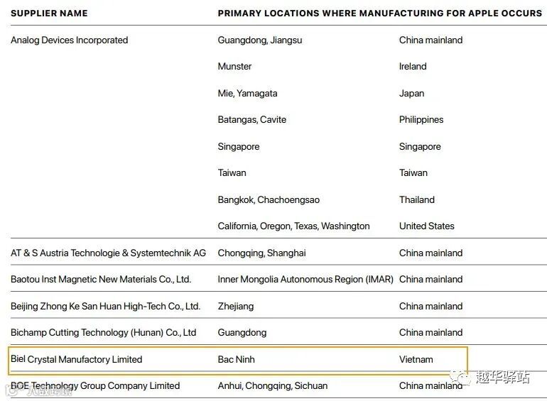 苹果的报告显示,北宁工厂也是比尔水晶目前唯一为苹果供应零部件的生产工厂。