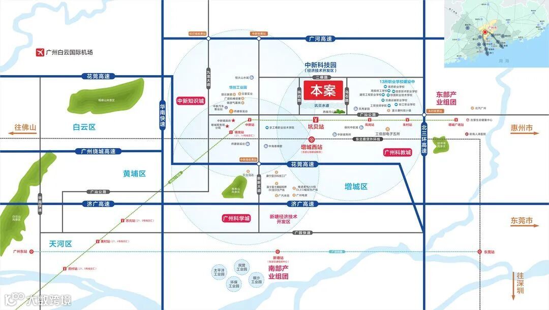 其中,作为广州东进的龙头,广州科教城自2012年以来就被市政府作为重点打造项目规划建设,比肩广州大学城,将建设成为30万高素质人才集聚的大国工匠成长高地,预计可带动形成百亿产业集群。