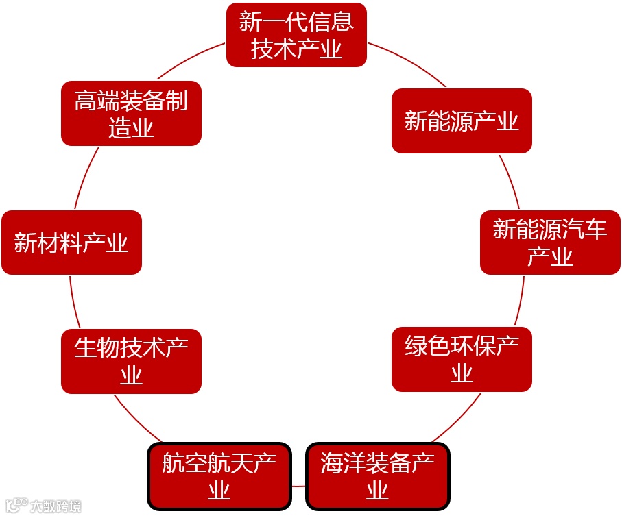 自十二五规划以来,连续三个五年规划中都提及发展战略性新兴产业。政府对其较为重视。《十四五建议稿》中指出,“发展战略性新兴产业。加快壮大新一代信息技术、生物技术、新能源、新材料、高端装备、新能源汽车、绿色环保以及航空航天、海洋装备等产业。2023年战略性新兴产业分类目录开始修订和完善,在2018版基础上将“八大产业”调整为“九大产业”,增加了“航空航天”和“海洋装备”两大产业,取消了“数字创意”产业。借势我们一同整理下战略性新兴产业都是指什么。