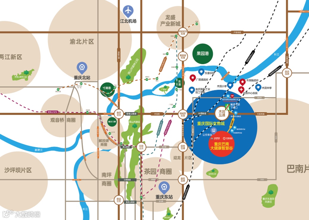 中南高科·重庆巴大健康智慧谷周边交通便利,距离石渝高速入口和出口仅1.95公里,距离重庆绕城高速入口和出口仅5.91公里。此外,园区还距离重庆国际机场和港口较近,为入驻企业提供便捷的物流服务。