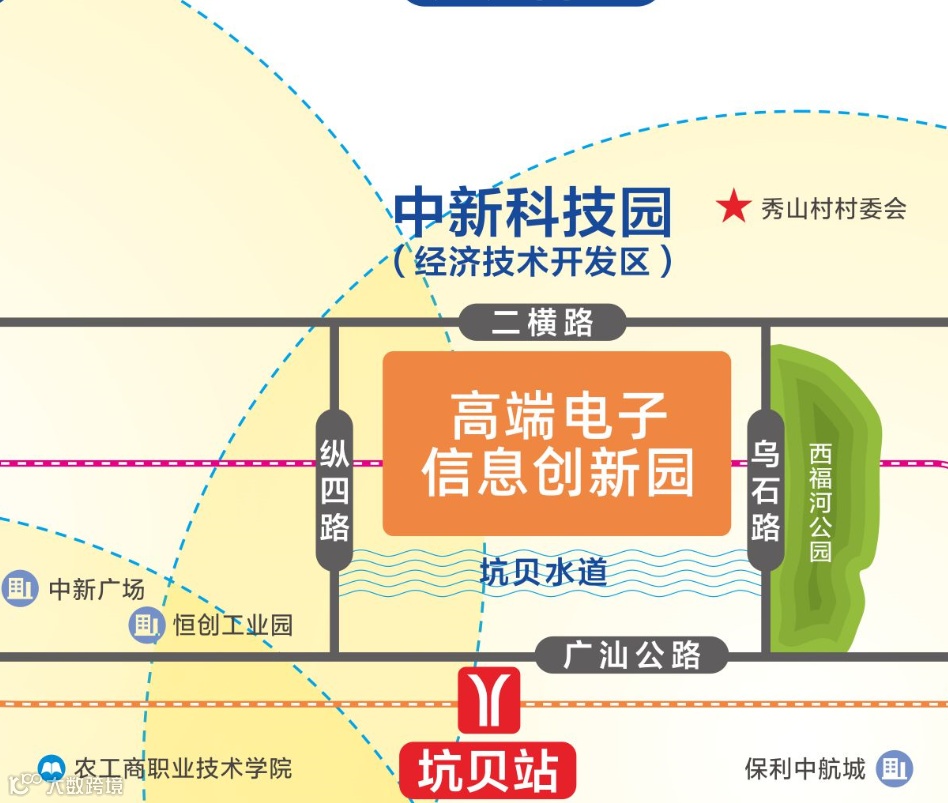 以水聚财,坑贝水道,依园而过,水利万物,与西福河在此交汇,让园区具有得天独厚的生态禀赋,双水系和湿地公园成为园区天然景观资源。