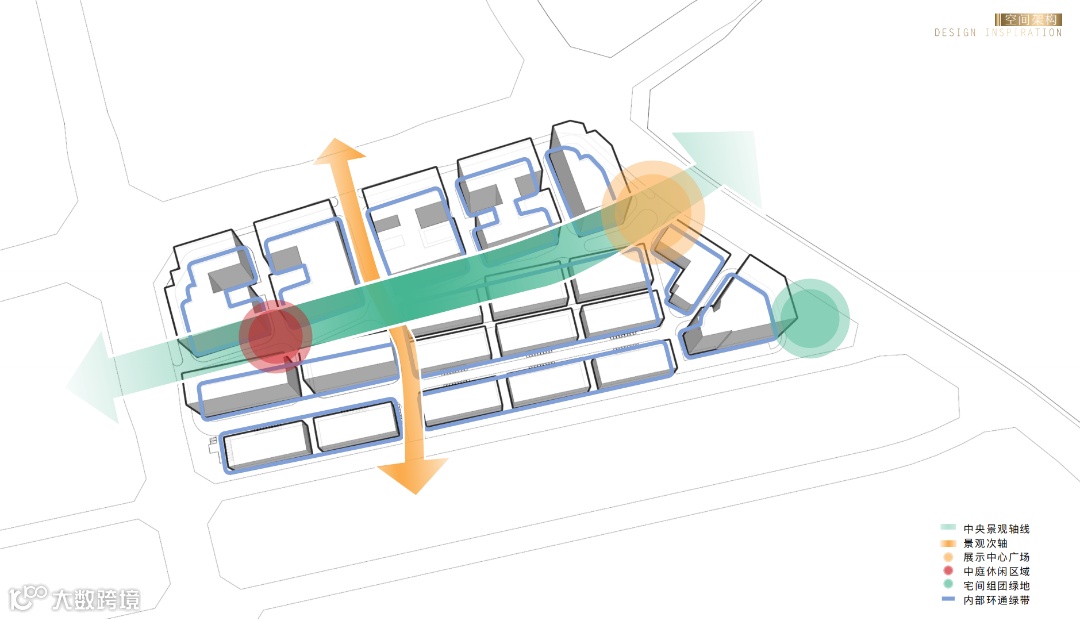 园区将现代办公与自然生态环境相互融合,以“一带一轴三组团”设计规划,串联起各个功能模块,通过规划结构层、复合环形层、理性基础层三个层次的景观,将绿带、滨水、活动广场穿插其中,将其打造成为具生态、文化、活力为一体的开放共享、多元复合的产业生活园区。