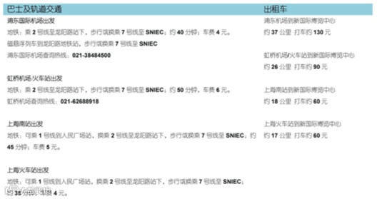 可乘坐212路西线、224路、266路东线、226路西线、217路、204路、219路、228路、309路至终点站国家会展中心公交站抵达展馆