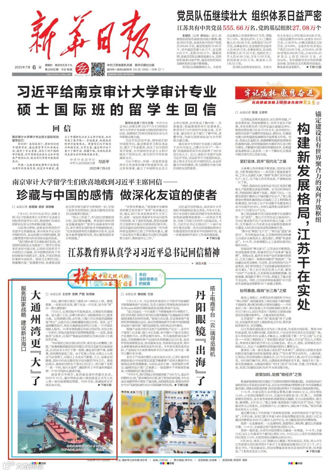 “国家战略新高地 通江通海通州湾”——站在滨海大道的巨幅字牌前,丁锋激情满怀,“踏上高质量发展新赛道、服务构建新发展格局,大通州湾变得更‘大’了!”